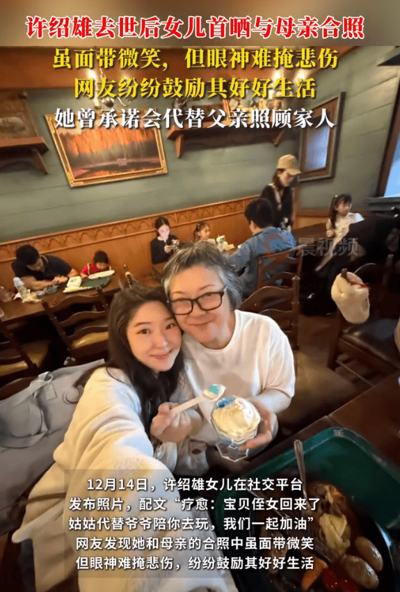 2月14 日,许绍雄女儿许惠菁在社交平台更新动态,这是其父许绍雄离世后她首次公开晒出与母亲的合照。照片中,母女二人面带微笑。此外,许惠菁配文写道 “疗愈:宝贝侄女回来了!姑姑代替爷爷陪你去玩,我们一起加油”。