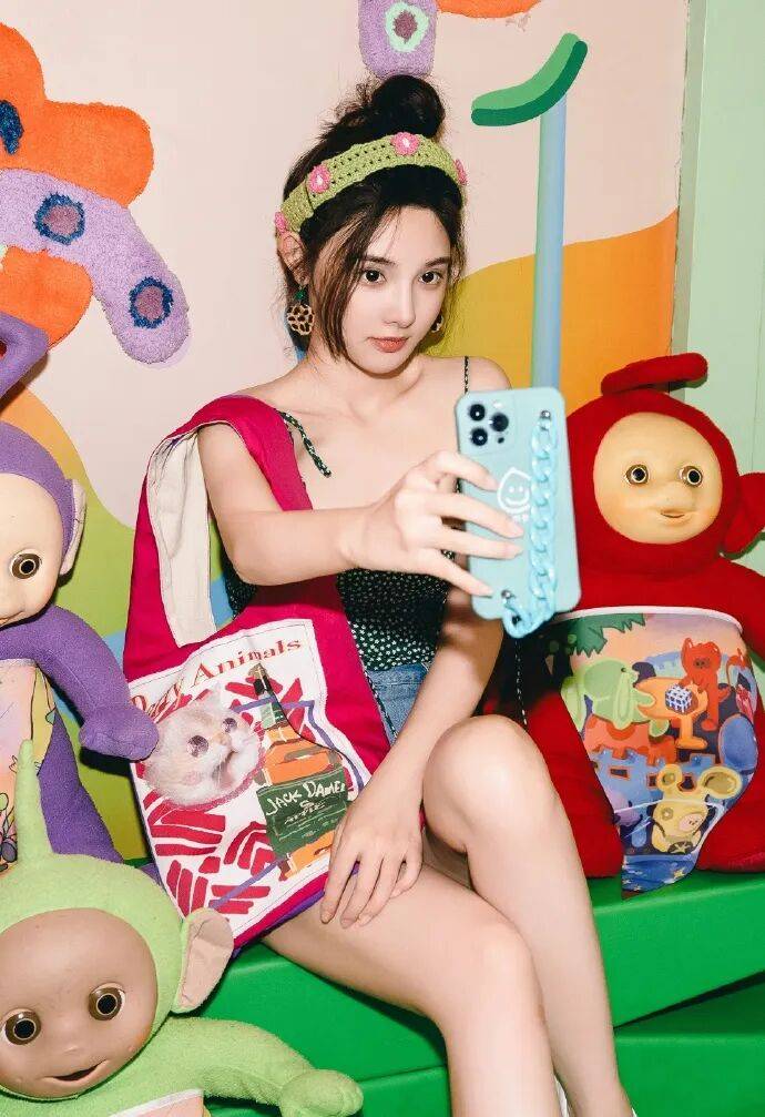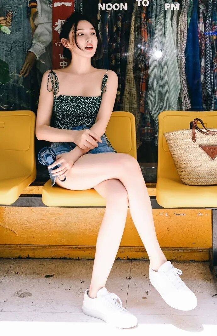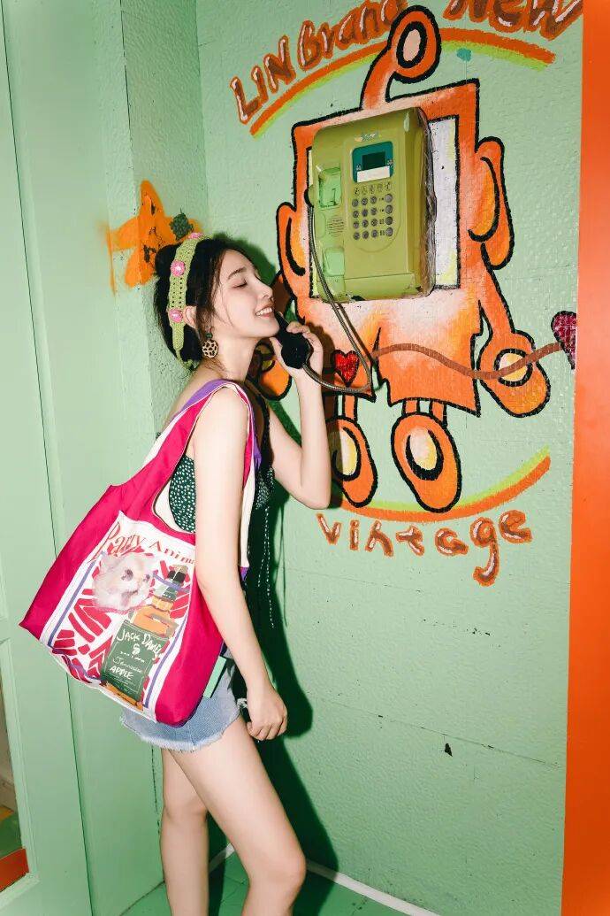 前阵子,彭小苒还穿着魅惑紫深V吊带上衣,搭配牛仔裤,凸显168cm身形的纤薄比例,而且摄影师很讲究,造成她下半身都是大长腿的错觉!
