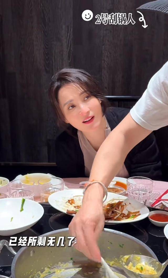 有意思的是,最后就餐结束,蒋勤勤拿起勺子刮锅底来吃,那模样才叫一个狼狈也很可怜。