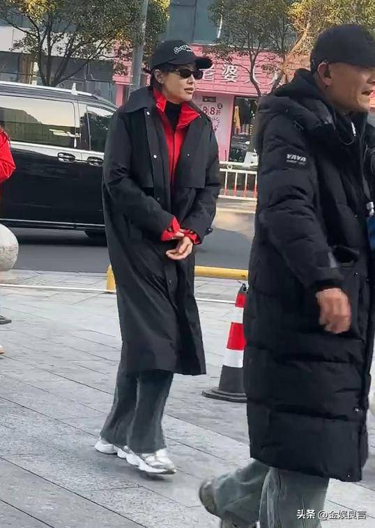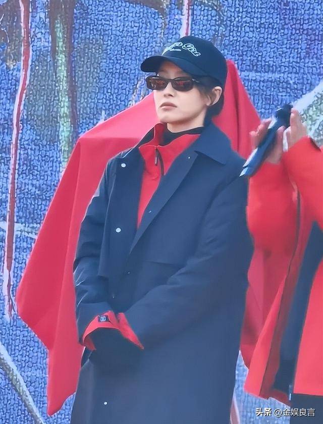 挥手打招呼时很有气场,可仔细看,肩膀有点僵硬,可能是新剧压力大,表情虽努力保持活力,但嘴角下拉的瞬间暴露了内心的紧绷。