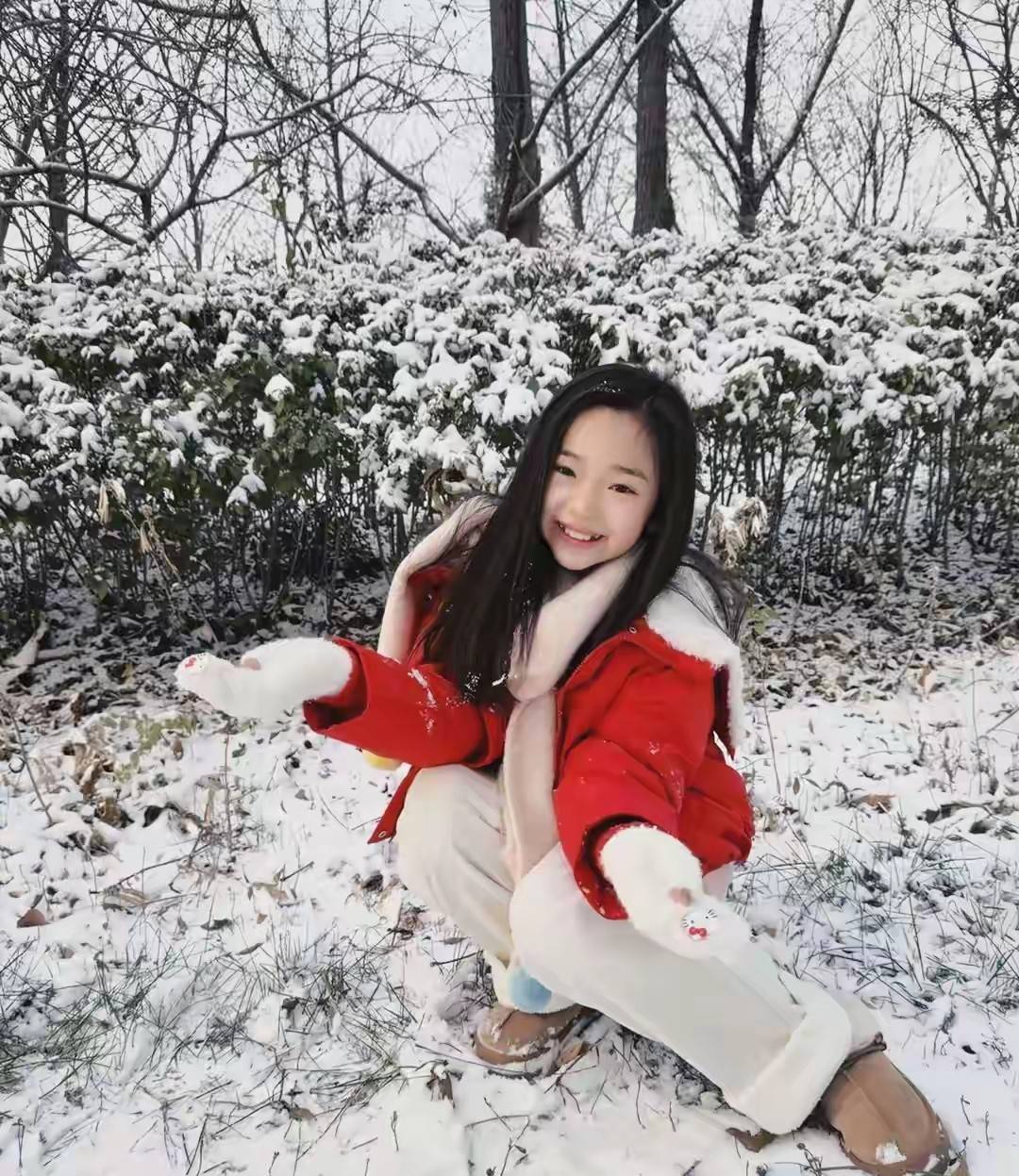 董璇在最近北京下雪当天发了一组女儿的照片,孩子穿着红色羽绒服在雪地里跑跳,脸上有小酒窝笑得很开心。照片没有做任何摆拍修饰,就是普通家长随手拍的那种,但转发量特别高,好多