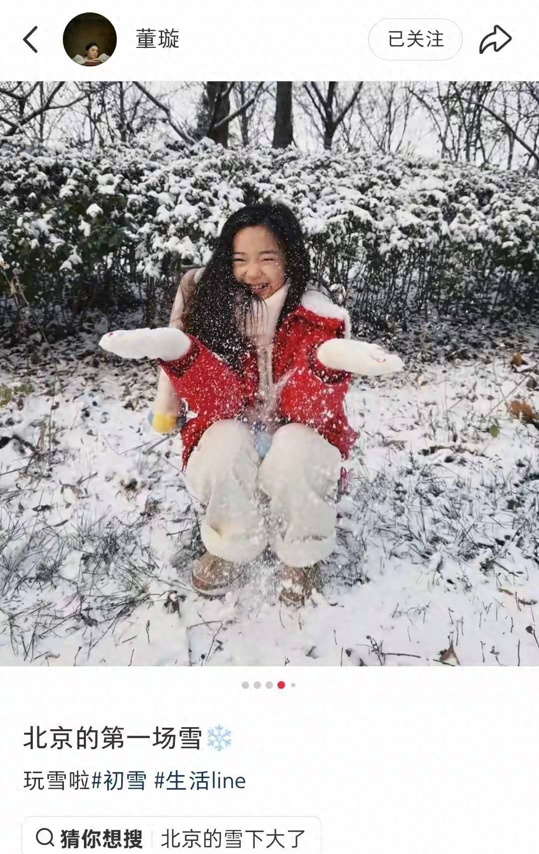 董璇在最近北京下雪当天发了一组女儿的照片,孩子穿着红色羽绒服在雪地里跑跳,脸上有小酒窝笑得很开心。照片没有做任何摆拍修饰,就是普通家长随手拍的那种,但转发量特别高,好多网友都在评论说想抱娃。