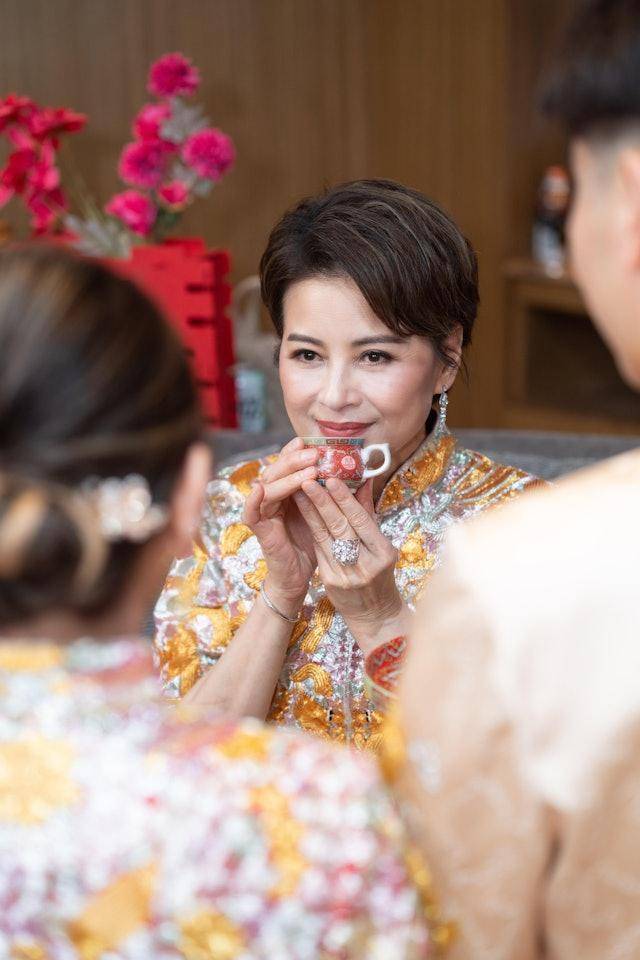 黎燕珊的女儿刘咏诗在去年诞下一个女儿,直到今年的6月再补办喜酒,在女儿的婚礼上,虽然前夫刘永并没有现身,但母兼父职的黎燕珊就代替了父亲的位置,牵着女儿进场,亲自将女儿交给了女婿,画面可以说是非常感人。