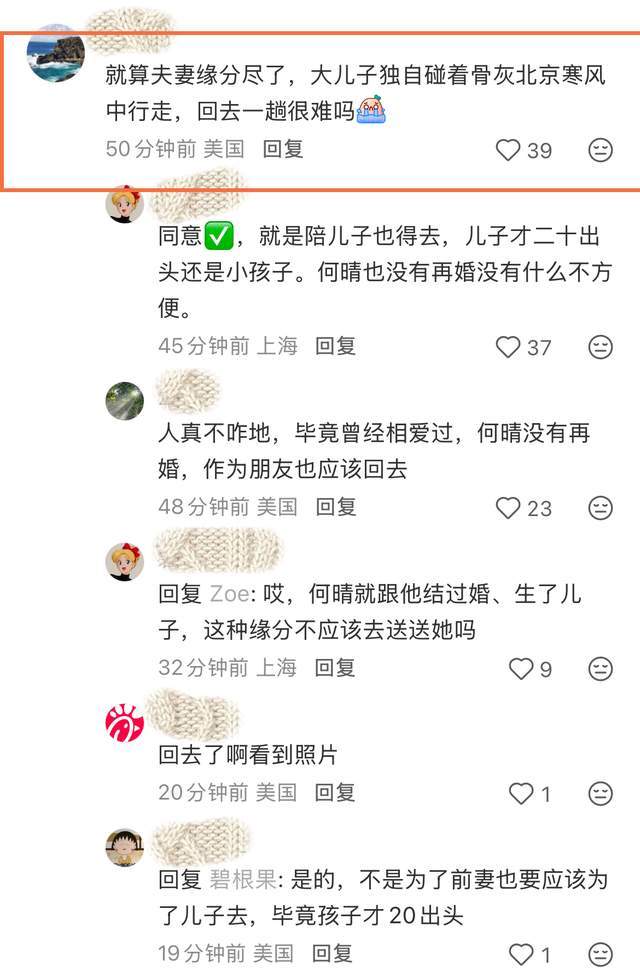 虽说当天没有现身殡仪馆送别,但能够同意儿子举行,这其实也是一种送别,如果当天他现身殡仪馆,试问是何种身份呢?前夫?朋友,站在哪里呢?岂不是尴尬。