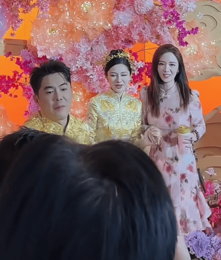 婚礼是中式风格,所以文咏珊也穿的新中式,看得出来一点不抢新娘风头,作为女明星到场是非常亮眼的,当然现场还有很多明星到场祝贺,大家熟悉的制片人张萌、陈浩民一家人、孙耀威都来了。