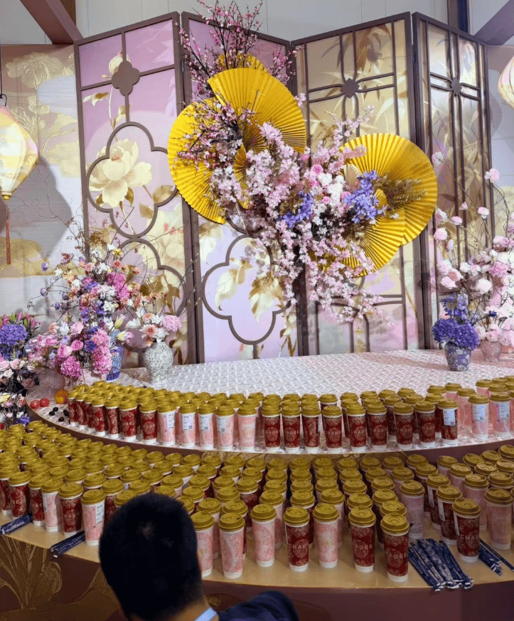 在12月15日,文咏珊也是产后首露面了,距离生完孩子不过3个月的时间,但身材恢复如初,穿着粉色新中式和老公吴启楠参加霸王茶姬老板的婚宴,毕竟吴启楠也是个商人,生意场上来来回回就这么些人,所以也算是陪老公赴宴了。