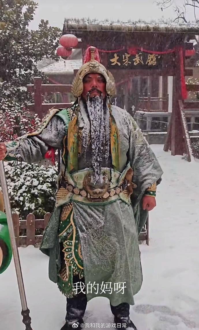 近日河南大雪,开封万岁山武侠城的一张游客照却意外“火”出了圈。照片里,一位扮演关羽的NPC演员在风雪中巍然站立,身上落满积雪,胡须挂满冰凌,远看宛如一尊生动的&ldq