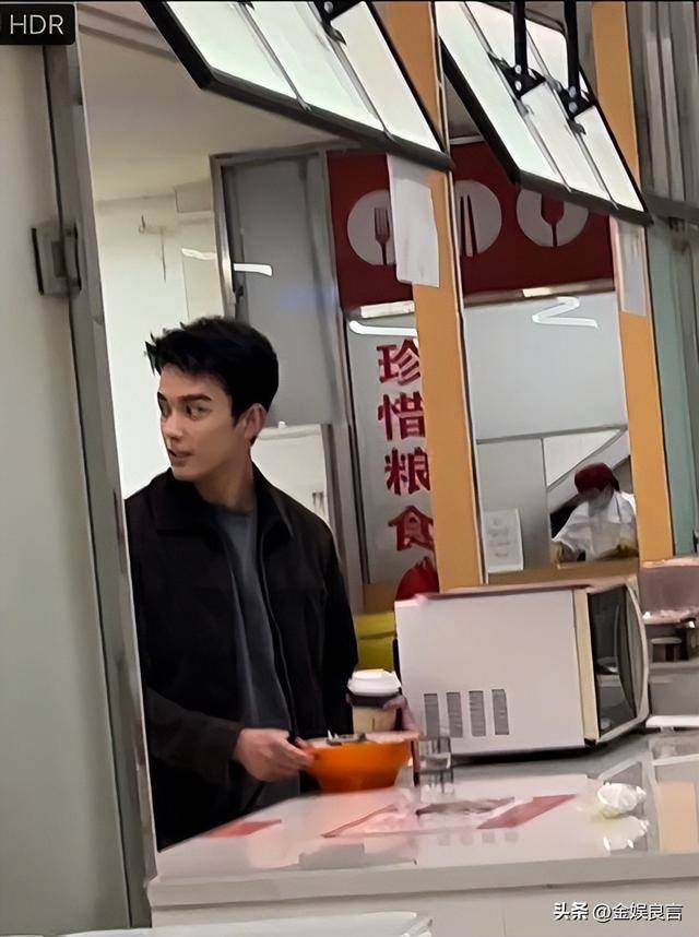 有北电校友晒过在食堂碰到他的照片,黑夹克配黑裤子,和同学坐在一起吃面,笑得特别治愈。