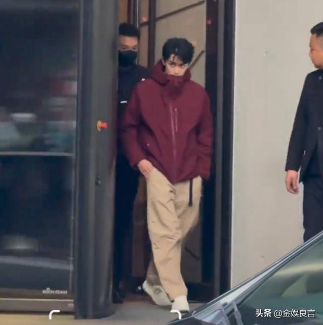 更绝的是他走路的姿势,只见吴磊把脸埋在领子里,低着头,走路有点外八字。