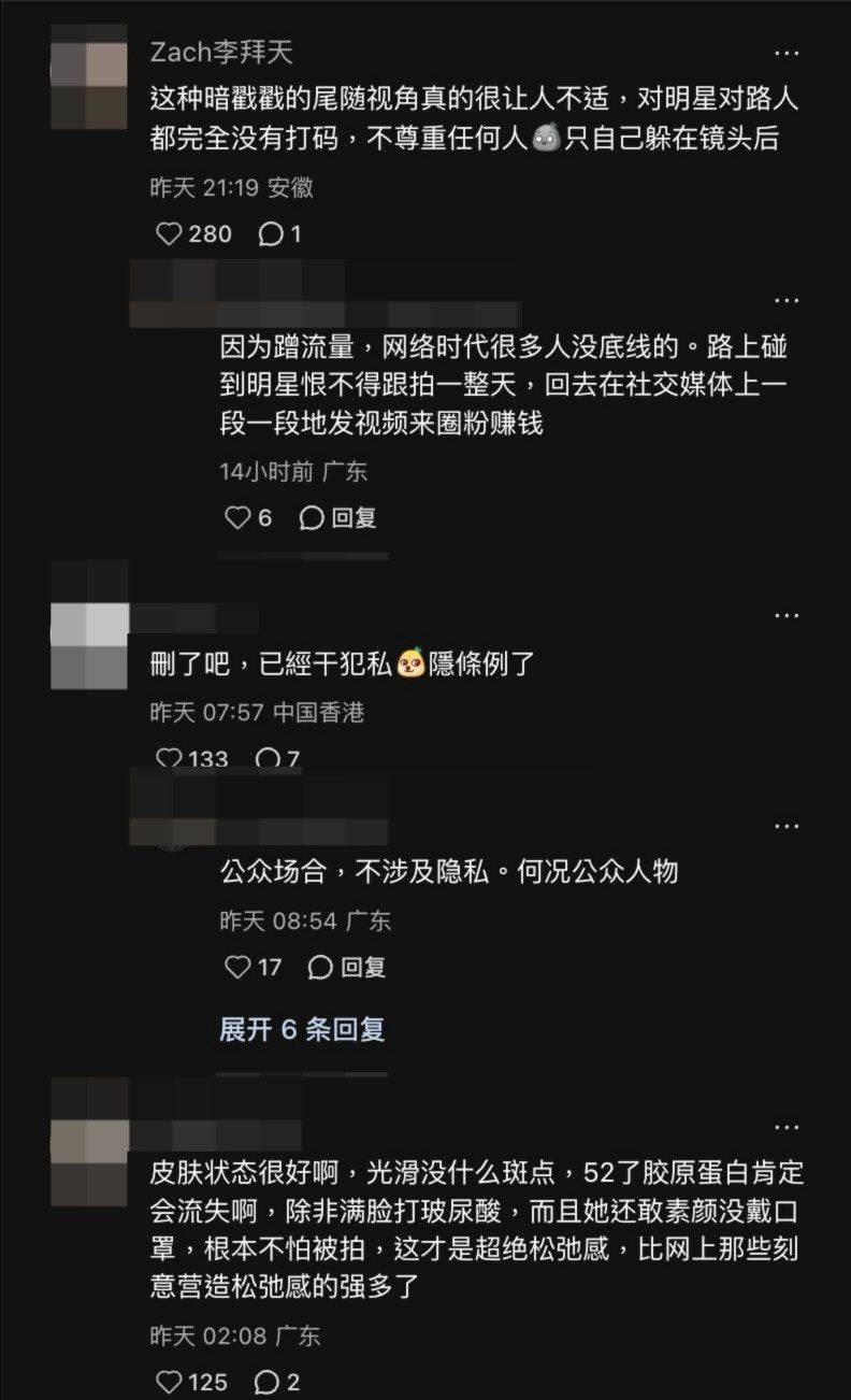 近距离镜头下的蔡少芬脸色虽略带疲倦,但皮肤紧致光滑得令人惊叹。网友纷纷留言表示:“我20岁的时候皮肤都没她这么细腻”“这保养功底绝了”。不过也有人对拍摄者尾随明星的行为提出质疑,认为应该给艺人留出私人空间。