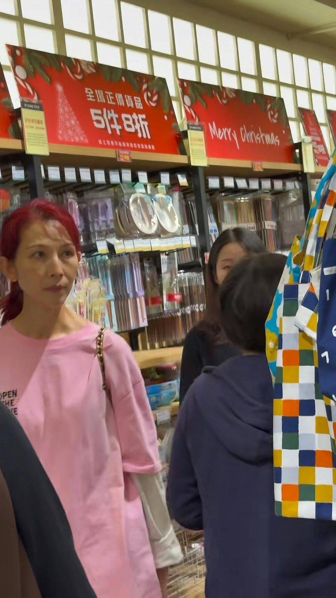 近日,有网友在社交平台晒出偶遇演员蔡少芬的视频。画面中,这位52岁的女明星正悠闲地在商场折扣区挑选商品,全程素颜的状态意外成为焦点。只见她身穿粉色上衣配黑色长裤,招牌红发在人群中格外醒目,身旁还跟着在《甄嬛传》中扮演“剪秋”的演员杨凯淳。