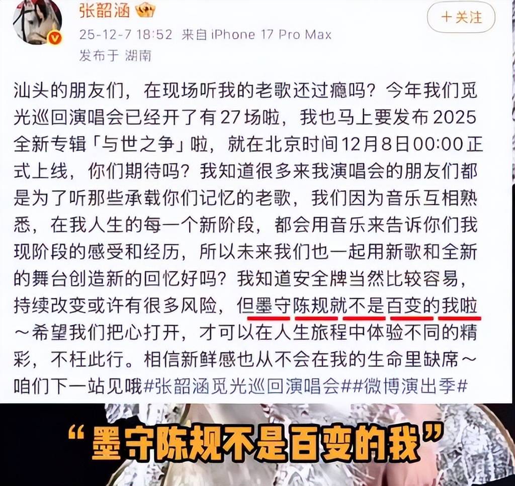 网友迅速制作出造型对比视频广泛传播,并犀利套用职场热梗“裁员裁到大动脉”进行调侃。此前,帕克打造的蓬松刘海、层次感卷发等经典造型,早已将“精灵感”深深烙印为张韶涵的标志性风格。这种十年如一日的稳定输出,精准契合了其脸型与气质,却也因“风格单一”而曾被少数观众认为“缺乏突破”。张韶涵团队为寻求创新而做出的调整,初衷本是突破,结果却让公众在落差中,骤然看清了那份被习惯性忽略的专业适配力究竟有多重要。
