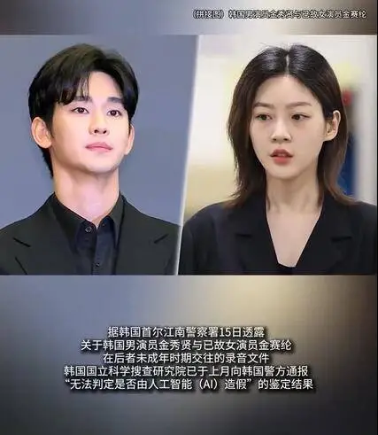 近日,据韩媒报道,12月15日韩国首尔江南警察署透露,韩国男演员金秀贤与已故女演员金赛纶在后者未成年时期交往的录音文件,韩国国立科学搜查研究院(下称“国科搜”)已于上月向韩国警方通报了“无法判定是否由人工智能(AI)造假”的鉴定结果。国科搜在通报中解释称,由于警方委托鉴定的录音并非原始文件,而是记者会现场播放版本的录音样本,且文件中混杂了大量背景噪音,受限于目前的技术水平,很难明确判定该声音是否经过了AI伪造或人为篡改。