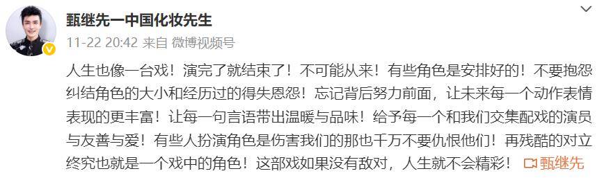 11月22日,甄继先发布了其生前最后一条动态,从内容中可以猜测甄继先大概率遇到了什么挫折,但心胸豁达的他表示自己会坦然面对一切,不会计较恩怨得失,或许是意识到情绪不对,有网友还在评论区询问甄继先是否安好,甄继先当时还予以回复。