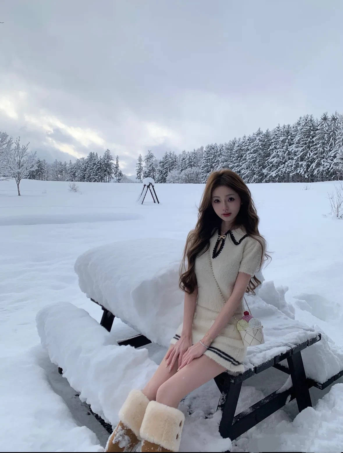 懒懒到底有多狠?冰天雪地里穿短裙,还直接坐在雪上。冻得小脸通红,鼻尖都更立体了。这真不是一般人能做到的。