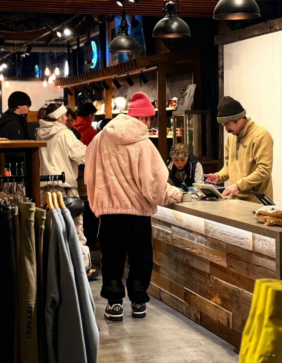 同样是在日本雪场,王思聪的打扮就很接地气。粉色针织帽、连帽的皮草外套、阔腿裤、LV板鞋,连带着背影都透着一种贵气。他包裹的严实、根本想象不到懒懒坐在雪地里拍照有多冷。