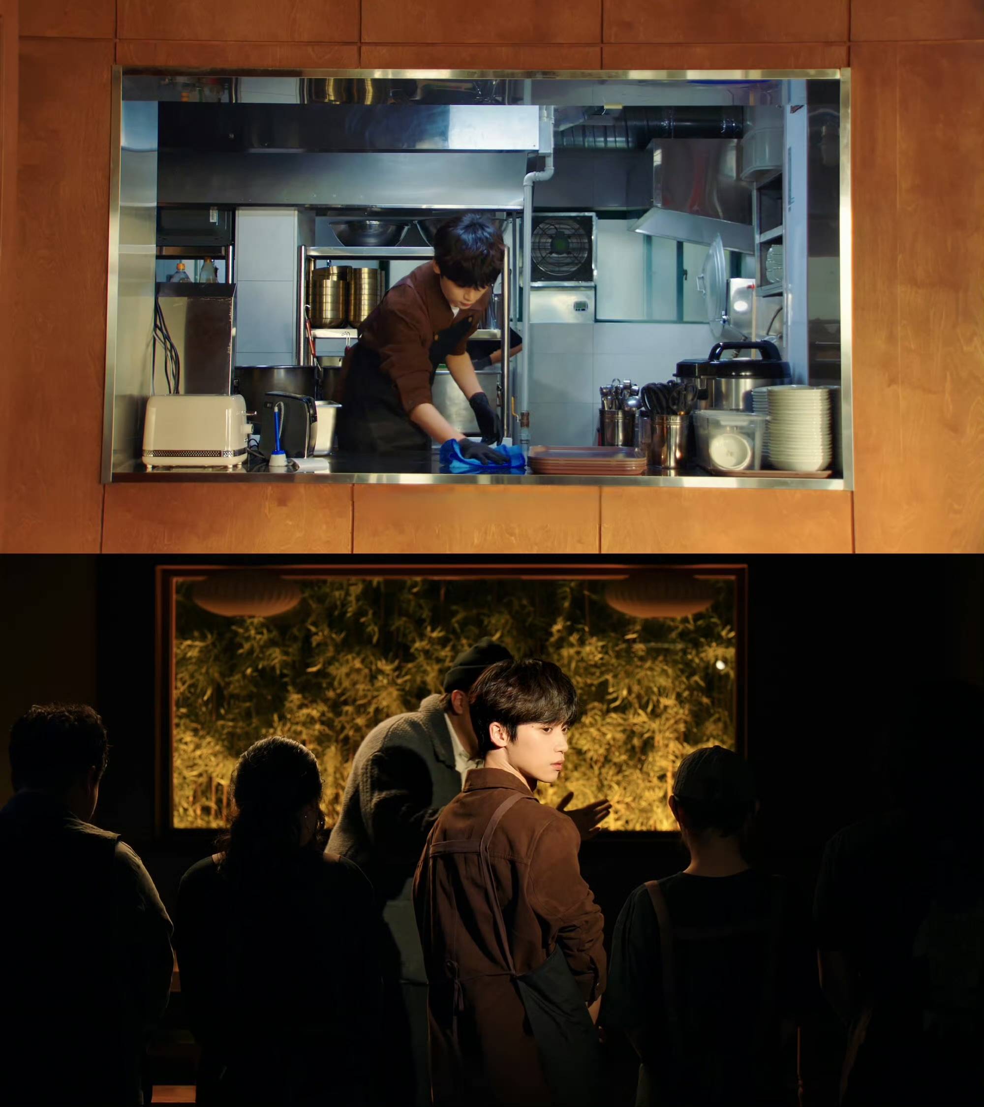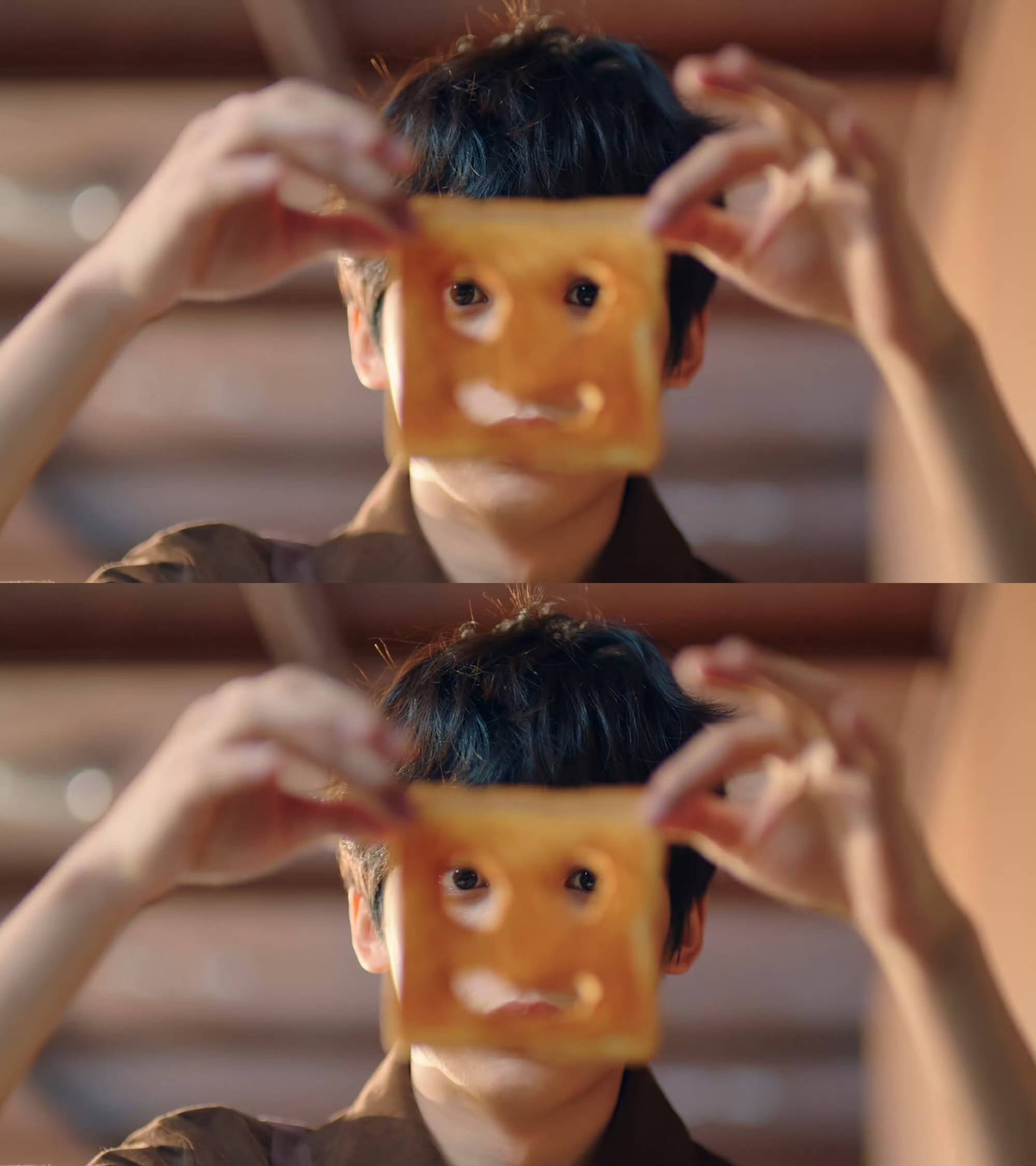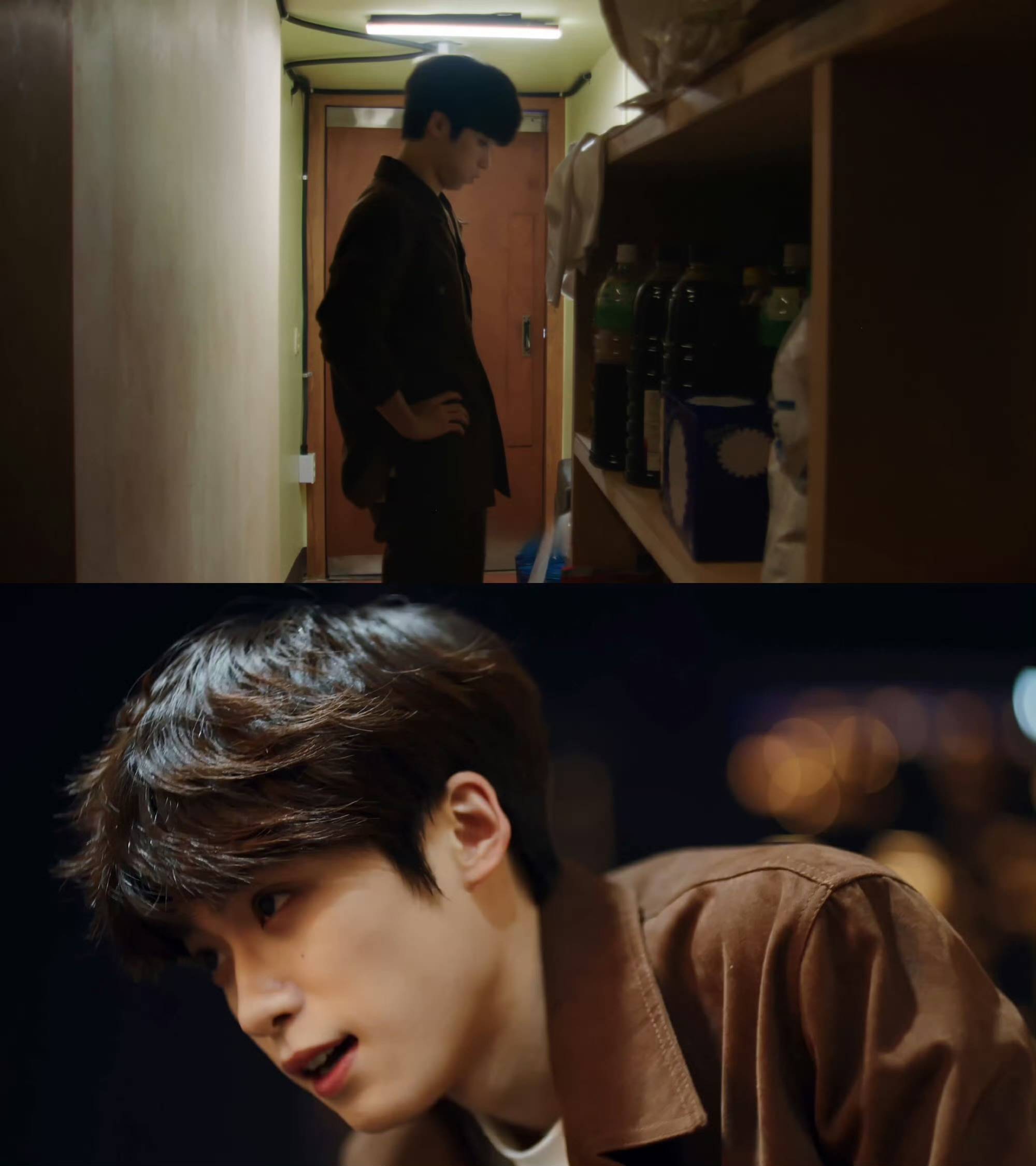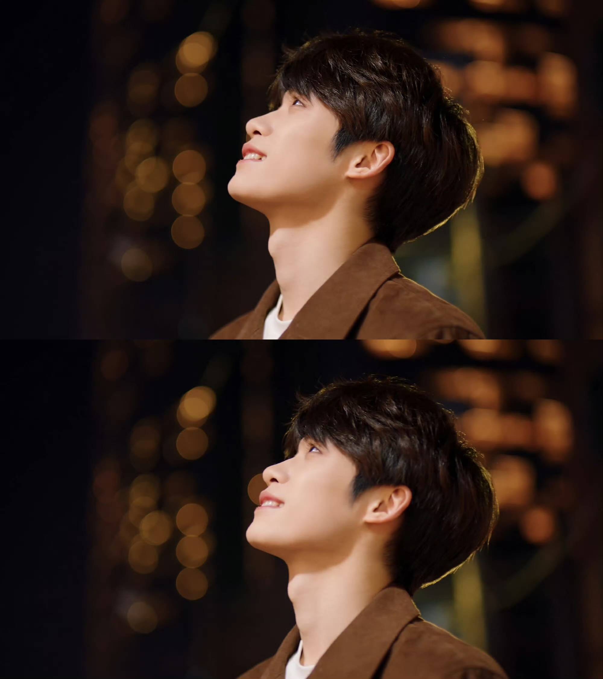 而12月16日发布的新歌《趁黎明来临前说爱吧》MV,更是把“韩剧男主”的氛围感拉满到天花板。全程在韩国济州岛拍摄,霓虹光影衬着海岸黎明,清透妆造配上怼脸侧颜特写,“破碎感”和少年气直接溢出屏幕,活脱脱一部行走的韩漫。最绝的是梓渝一人分饰两角的设定,直接让网友磕疯了:一边是夜间便利店兼职的负债青年“郑朋”,简朴衣着+疲惫眼神,完美复刻“韩剧清贫男主”标配,让人瞬间代入“默默扛下所有苦难”的虐文剧本;另一边是黎明海岸边奔跑的追梦少年,暖色调画面裹着理想主义,元气满满得像颗小太阳。最后两个角色在破晓时分相拥,完成“自我和解”的闭环,被观众戏称“这镜头直接封神,比韩剧大结局还戳人”。