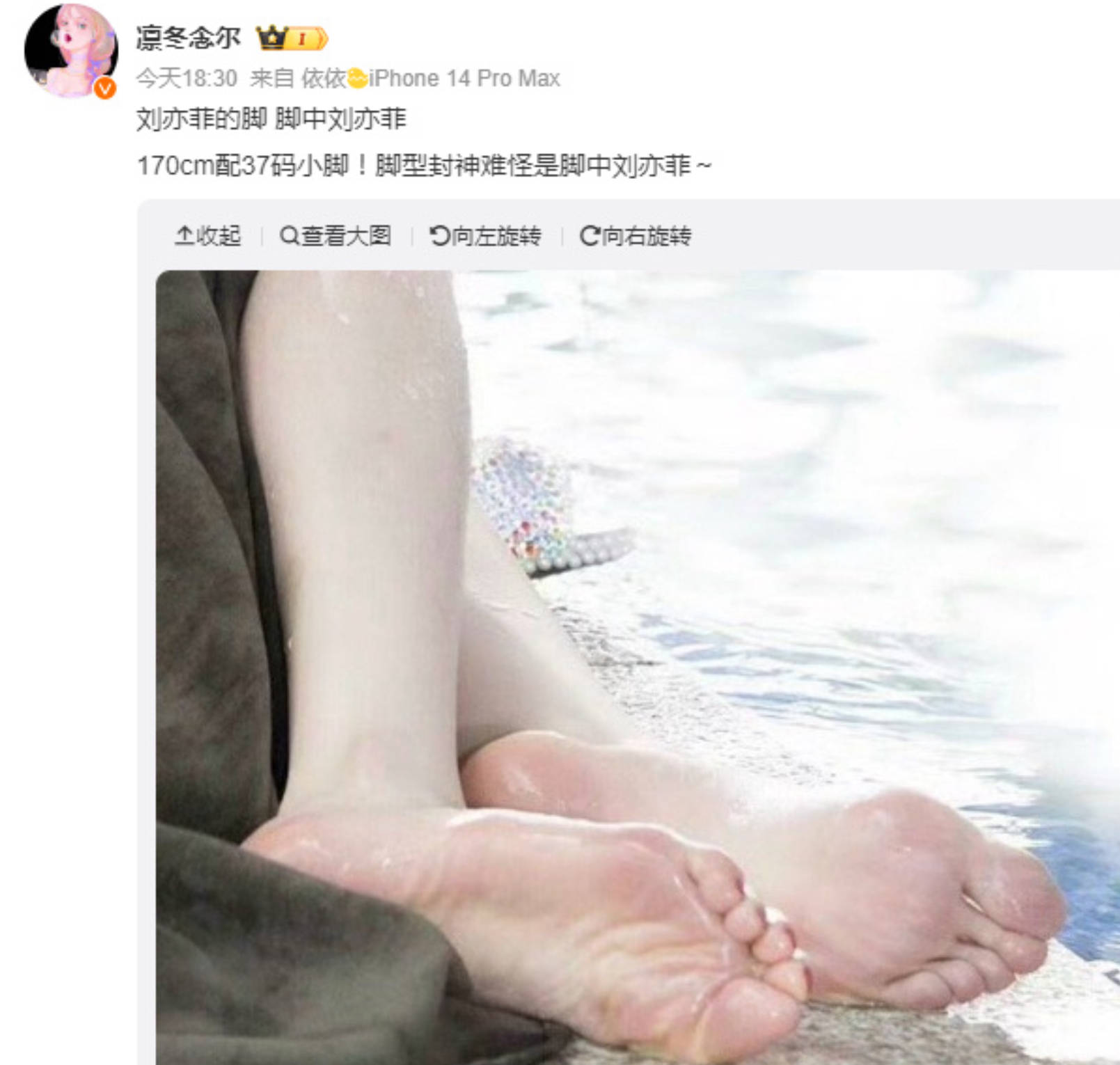 更有意思的是,这不是“刘亦菲”第一次成为审美代名词。之前就有“猫界刘亦菲”“手中刘亦菲”,如今轮到双脚,足见她的公众形象早已超越本人,成了大众心中“美”的具象化标签。不过争议也没缺席,有人翻出早年她穿高跟鞋的生图,吐槽“脚背青筋明显不够完美”,但很快被网友反驳:“长期拍武打戏、穿高跟鞋的痕迹,明明是敬业勋章”!
