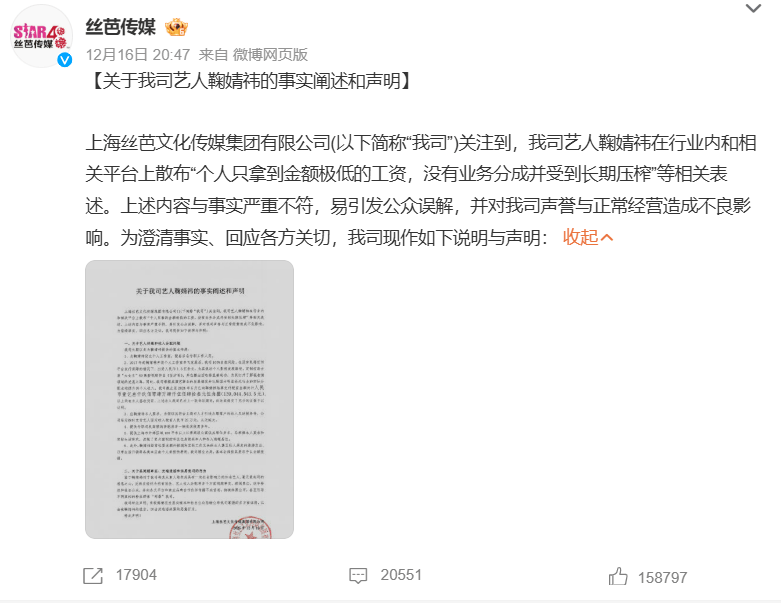 也因此,丝芭传媒也面对揭露其采用“9:1分成”(艺人仅10%)、20年合约被批“内娱缅北条款”等负面反馈。