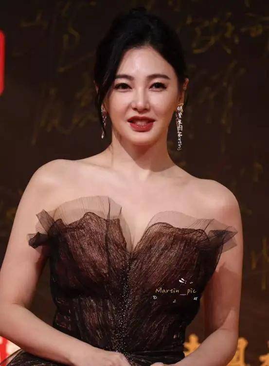 当天的红毯上,张雨绮的出现直接将氛围推向高潮。她身着一袭焦糖色亮片鱼尾裙,深棕与浅金的渐变如同落日熔金,灯光掠过裙摆时,细碎的亮片折射出星河般的光泽,行走间裙摆摇曳,每一步都带着破风的气场。