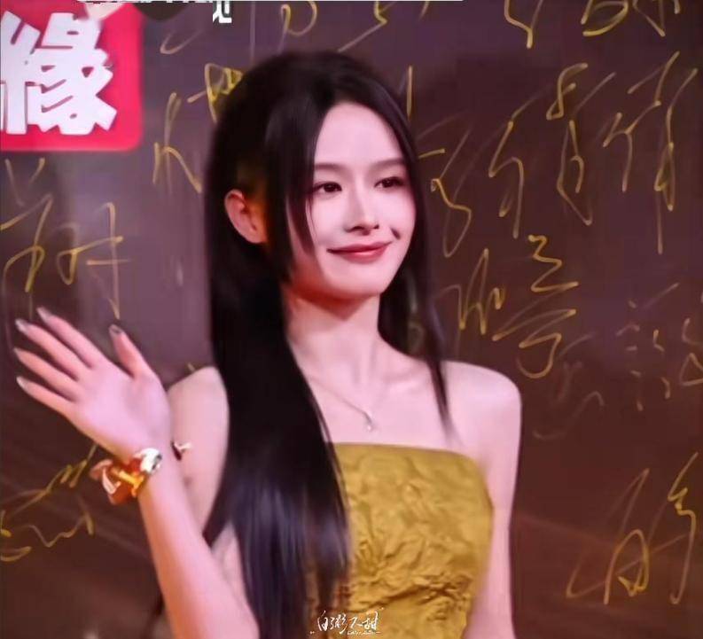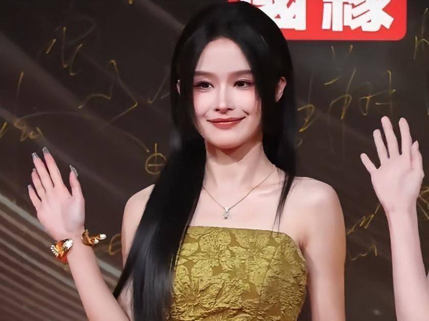 余茵的造型本想走新中式路线,姜黄与竹绿拼接的抹胸礼裙搭配黑长直国风公主切,初衷是兼顾雅致与俏皮,可实际呈现效果却差强人意。最明显的槽点便是她的假发片,在高清镜头下,黑色假发片与自身头发的颜色差异一目了然,显得格外突兀,瞬间拉低了整体造型的精致感。