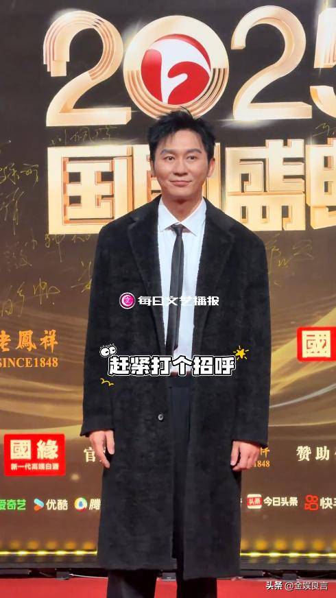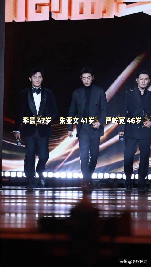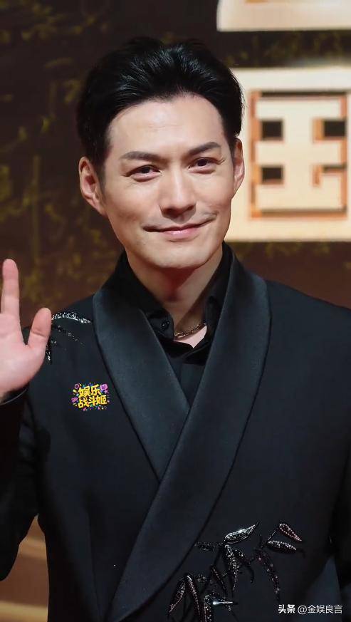 严屹宽一身黑色西装更显挺拔,五官立体得像雕塑,举手投足都清爽硬朗,完全看不出岁月痕迹。