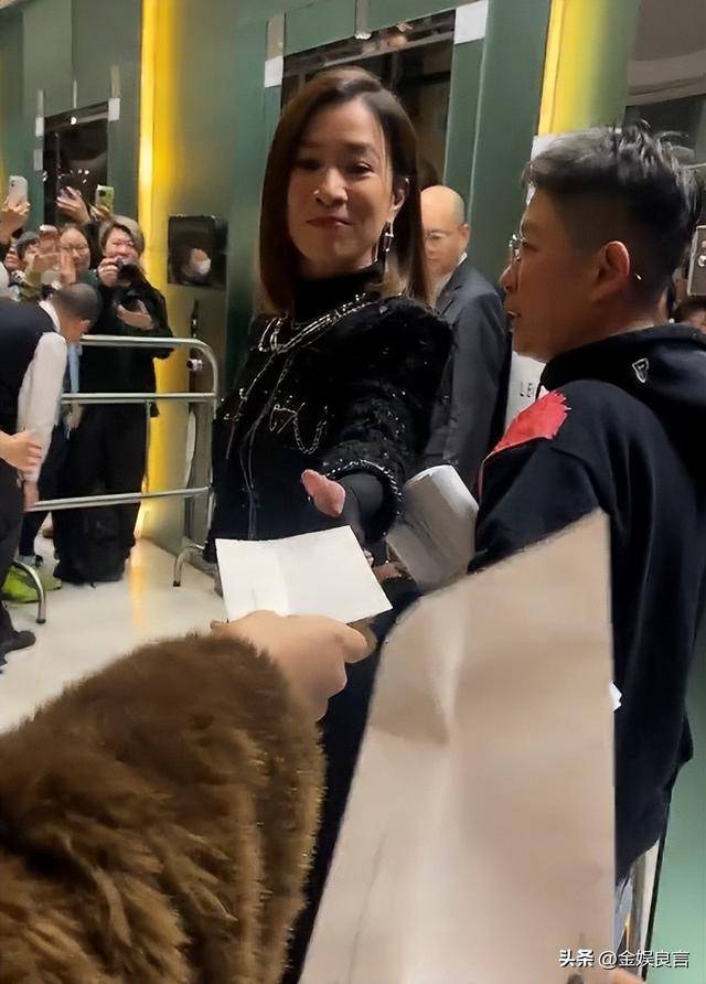 等到集体合影时,她更是稳稳站在中间,双手自然下垂,眼神凌厉,瞬间变回剧中的文慧心,那种自带的女王气场,让身边的人都成了陪衬。