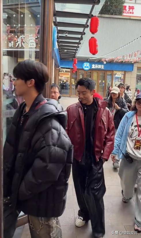 这次在景区偶遇郑恺,他穿的红皮衣特别惹眼,搭配修身黑皮裤,衬得身形很挺拔。