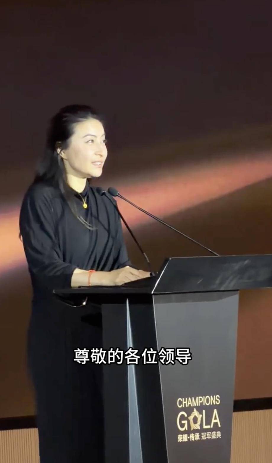 还值得一提的是,霍震霆的儿媳妇郭晶晶也在场,她打扮正式,穿了黑色的长裙,戴了一条金色吊坠,留意到手上还绑了发箍,不过这也是她的本色风采所在。而郭晶晶如此精心地打扮,是因为她也要上台发言,发言的身份不见得是代表霍英东基金会,毕竟她也是奥运冠军,她在开场的时候,还亲切的称台下的伙伴为冠军同伴。
