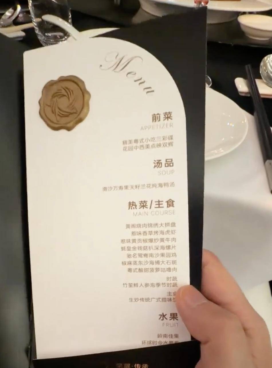霍英东体育基金会举办晚宴,招待一众体育冠军,以最高的规格,还出动了豪车劳斯莱斯负责接送冠军运动员往返酒店与会场。而且晚宴的菜单也相当丰富,菜式以粤菜为主,前菜、汤品、主食、水果一共有13道菜。不见得都是山珍海味,却都是美味佳肴,必定让所有宾客大饱口福。