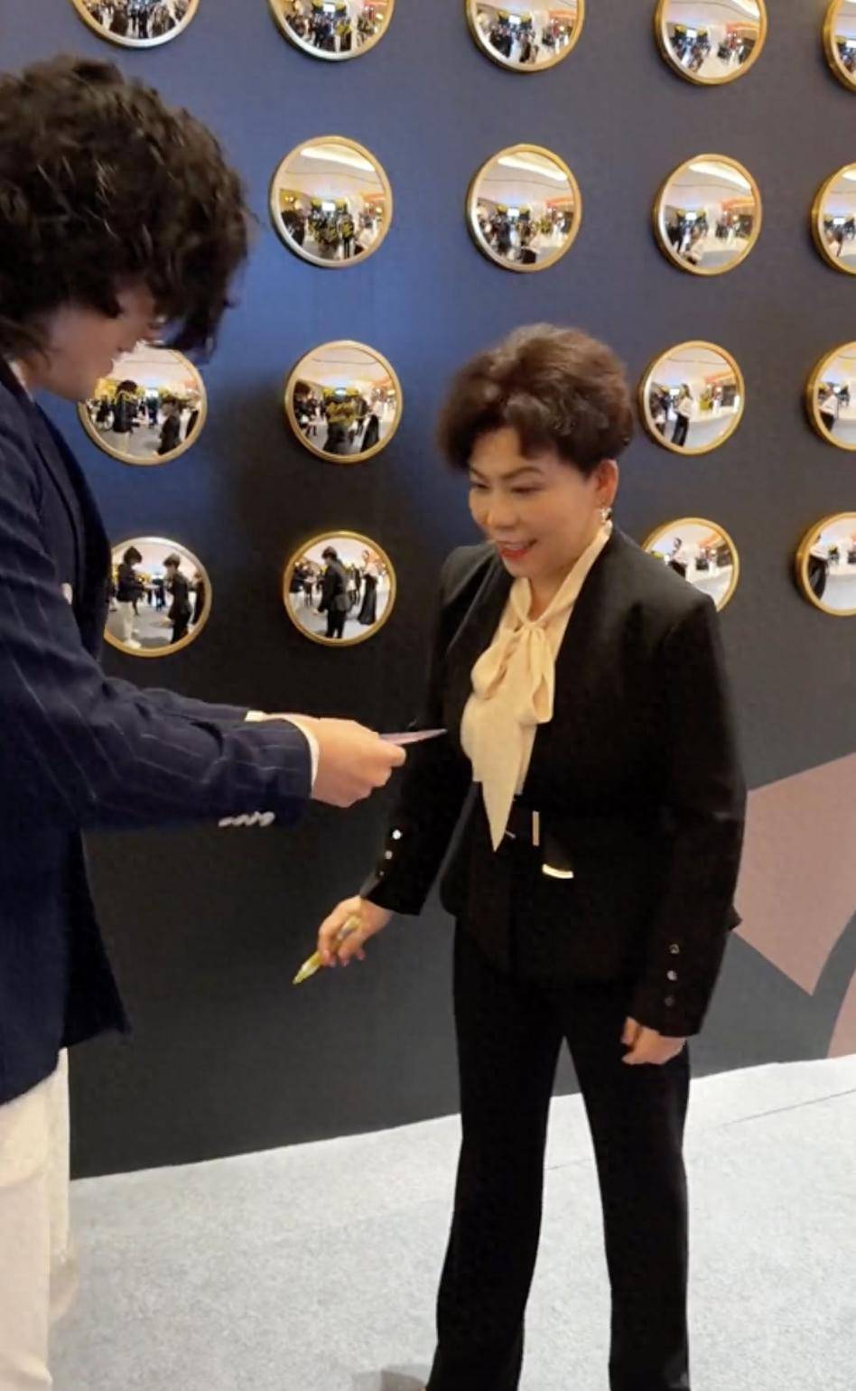霍英东将事业交由长房的三个儿子打理,三个儿子各有分工,其中体育事业就由长子霍震霆全面负责,所以霍英东体育基金会晚宴,由霍震霆全家全权负责。晚宴是以最高规格举办,现场还设有亮相、签名区域,参与的嘉宾理应都要以正式的装扮现身,并且在会场的背景板前签名、留影。当天请来了不少体育界的名人,包括冠军李宁、邓亚萍都在场。邓亚萍如今是已经转型成为了商人,不过依然心系体育界,当天她身穿商务套装现身,与从前做运动员的时候是截然不同的风采,可谓是有型有款。
