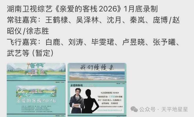 值得一提的是,王鹤棣和沈月都与芒果台有着深厚的合作关系,二人的常驻身份几乎可以确定。除了他们之外,还有吴泽林、秦岚、赵昭仪和徐志胜等人也将加入节目。吴泽林目前是《你好星期六》的代班主持,虽然他还处于上升期,但他在节目中的表现受到了不少观众的喜爱,作为芒果系艺人,他加入《亲爱的客栈》也是情理之中的事。