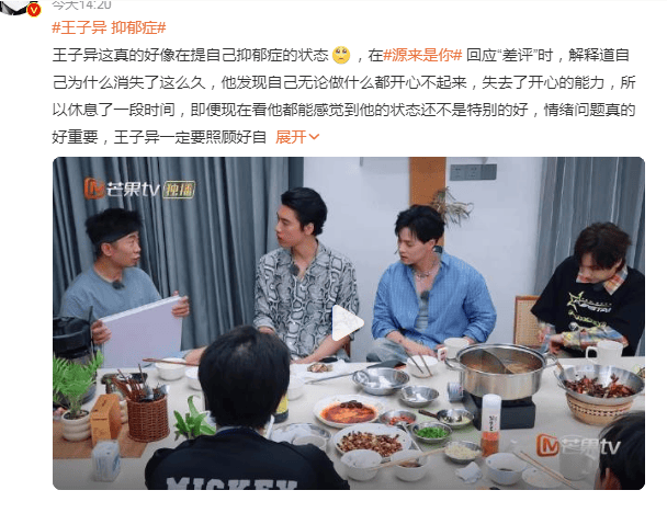 王子异在综艺《源来是你·青春季》中首次公开谈及自己因长期情绪崩溃暂停工作的经历,坦言曾“失去开心的能力”,引发公众对艺人心理健康问题的广泛关注。