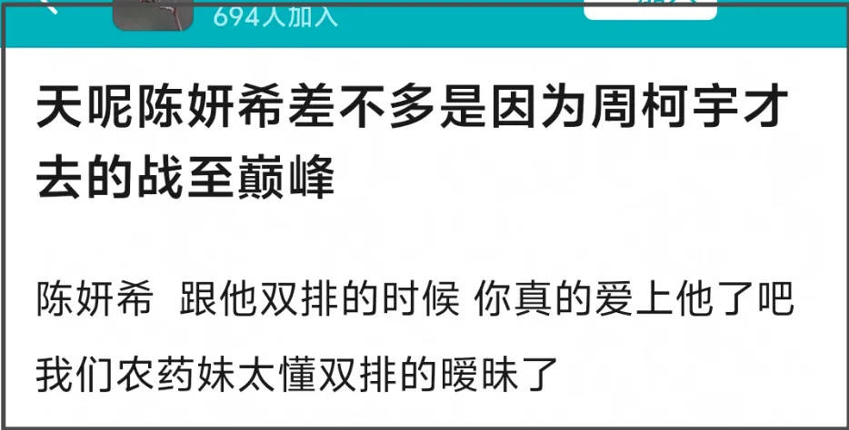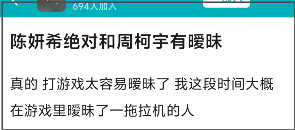 就看周柯宇和杨幂因为游戏频繁接触期间,二人同框粉红色泡泡藏不住呢,同样的事情发生在周柯宇和陈妍希身上,似乎也不算离谱。