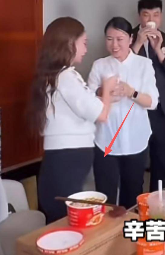 她怀着孩子,穿着高跟鞋还要蹲下来给直播造势,不知是不是出于她所愿。