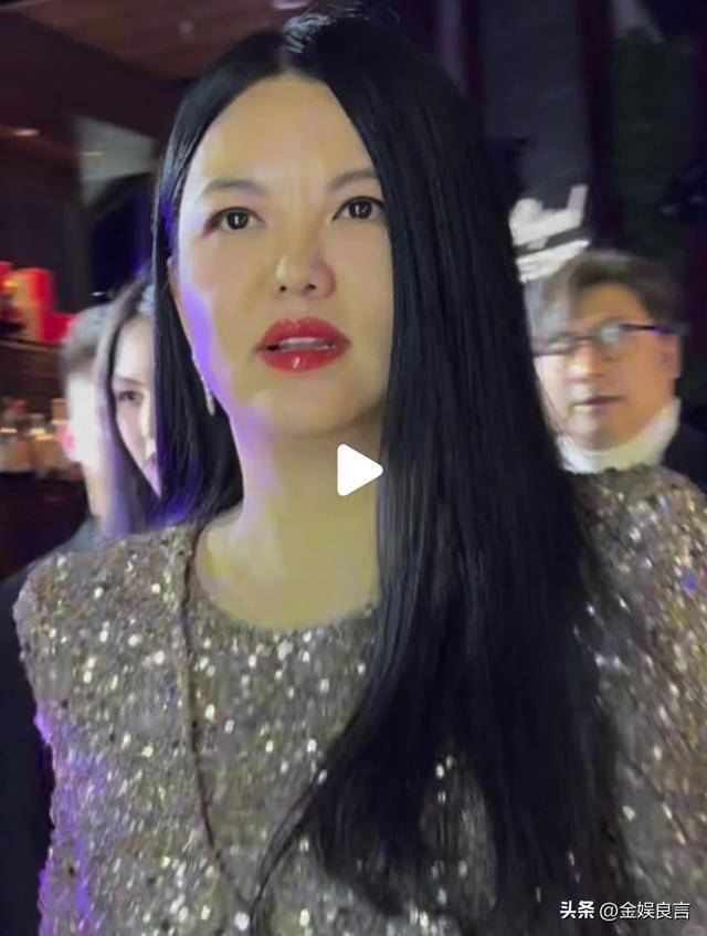 当天李湘穿了条亮片长裙,瘦了不少的她,依稀可见当年的风采。