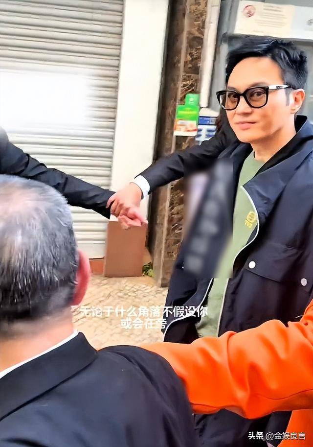 更让人意外的是他的身材,平时在镜头前看起来高大挺拔的他,当天因为穿着一件宽松的绿色卫衣搭配黑色防风服,显得有些瘦小。