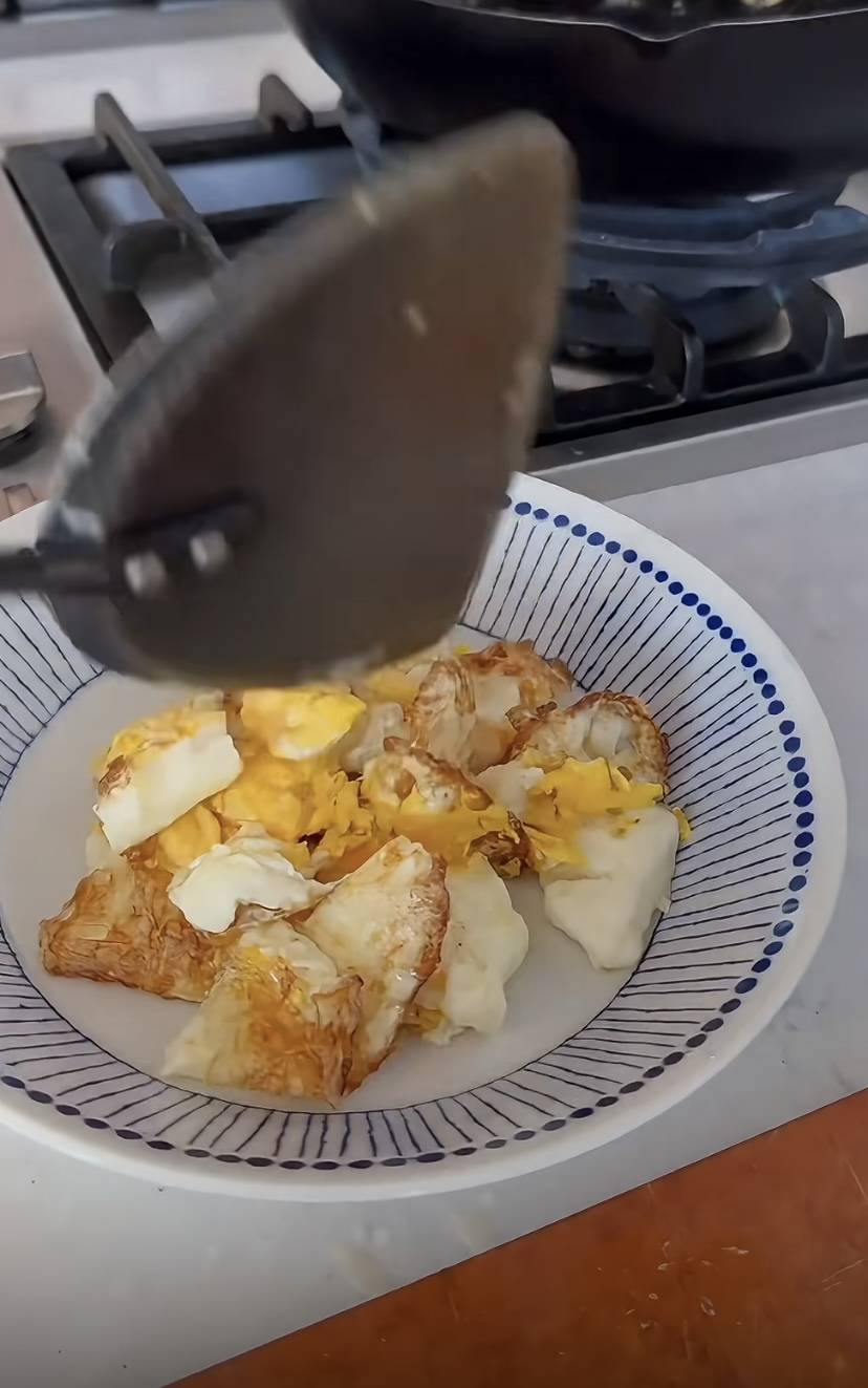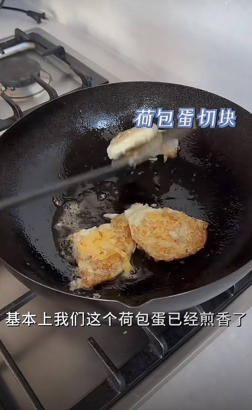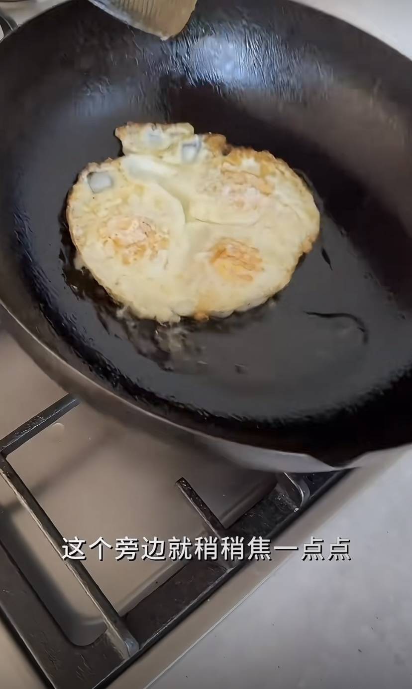 她还会特意增加一点煎荷包蛋的时间,让荷包蛋的边缘位置稍微变焦、以及蛋黄熟透。想要跟着做的话,也可以选择炒鸡蛋。煎鸡蛋的方式是董洁自行改进的,因为她认为煎出来的更好吃。