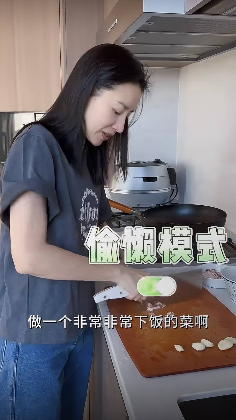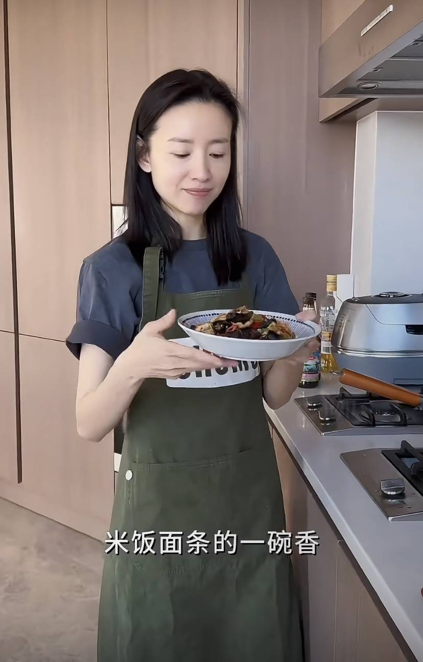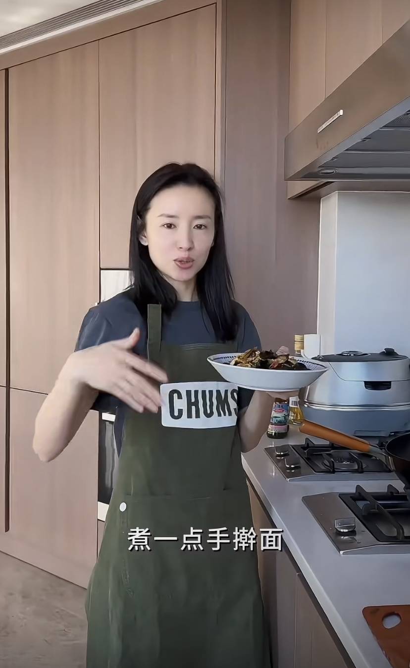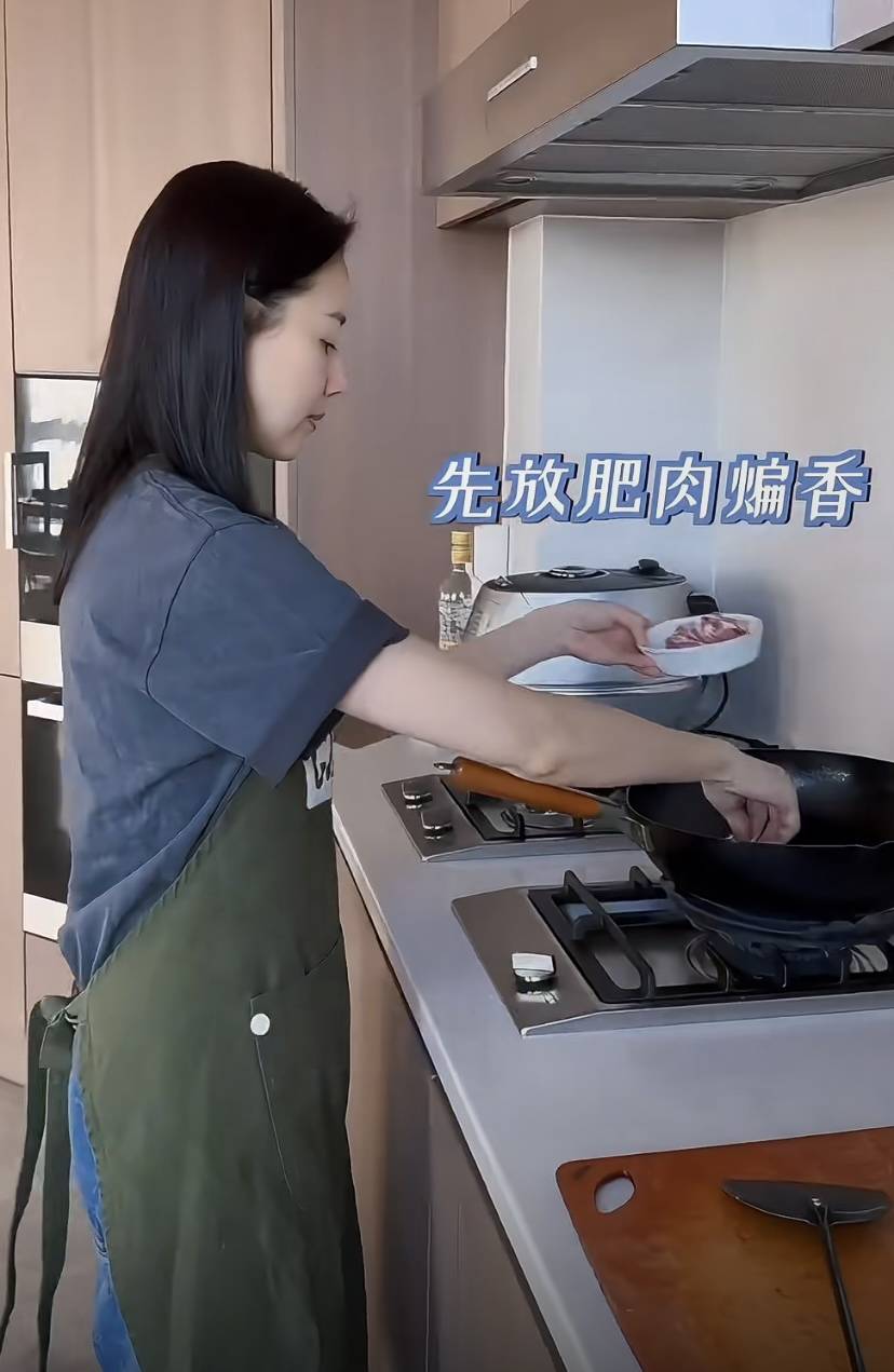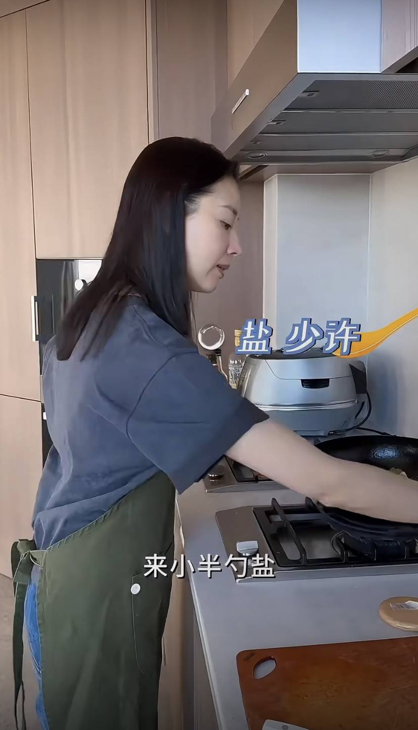 很多人自己做饭都是应付,能炒一个菜绝对不会炒两个菜。董洁一个人都亲自动手炒3个菜,也太自律了吧。