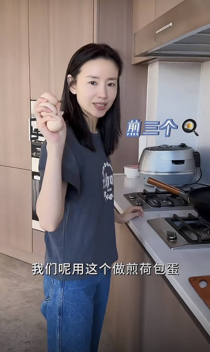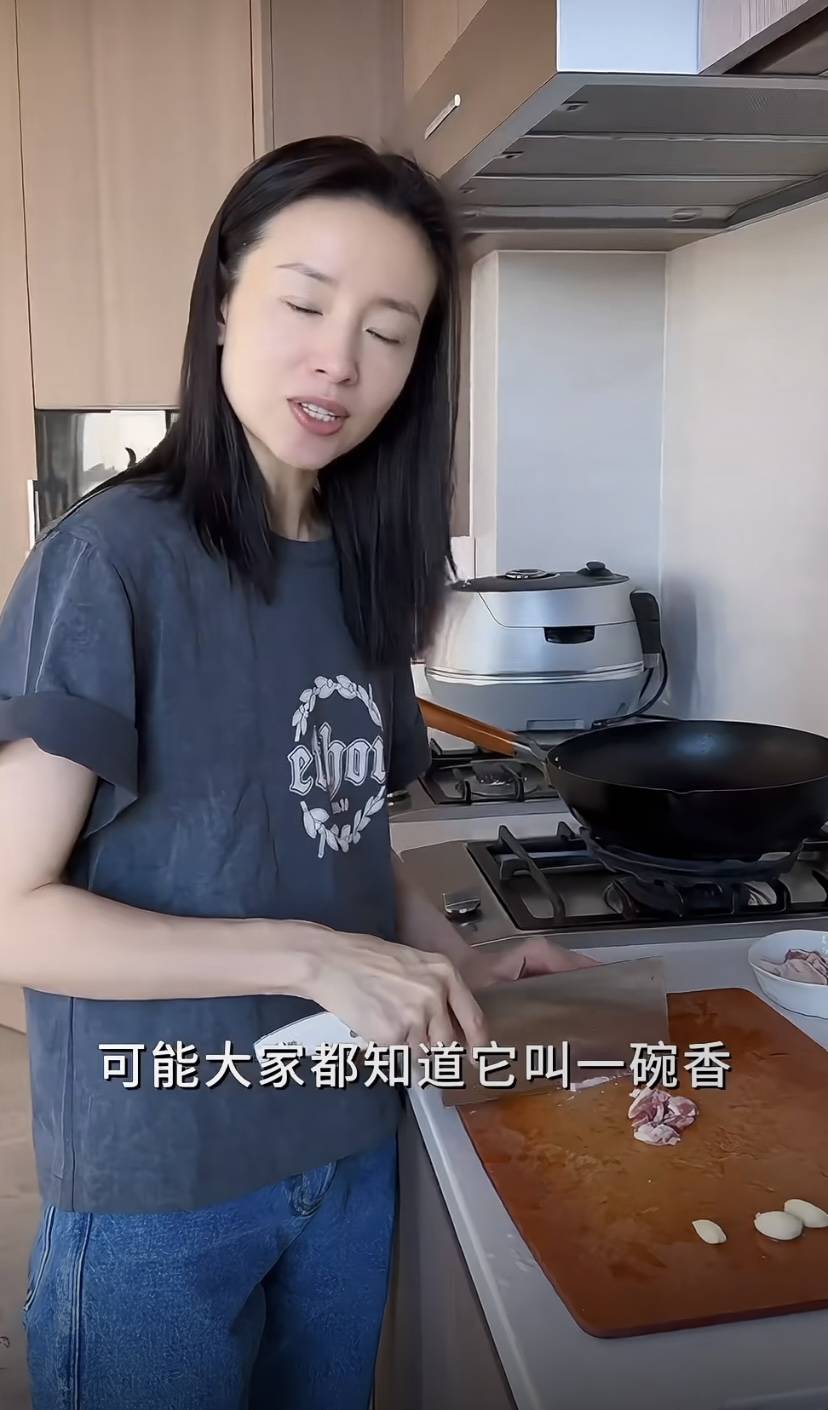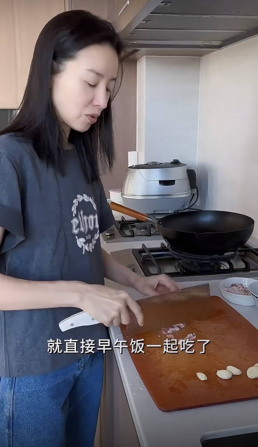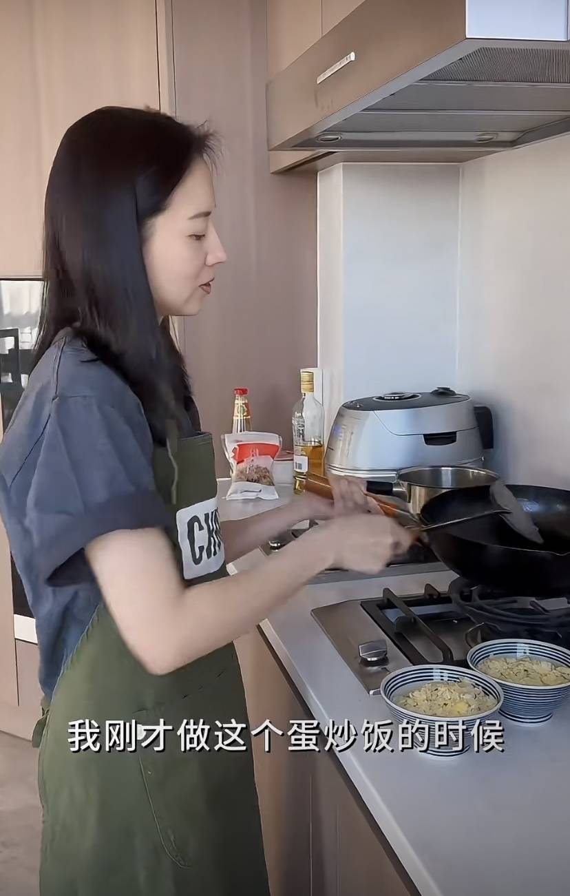 很多人自己做饭都是应付,能炒一个菜绝对不会炒两个菜。董洁一个人都亲自动手炒3个菜,也太自律了吧。