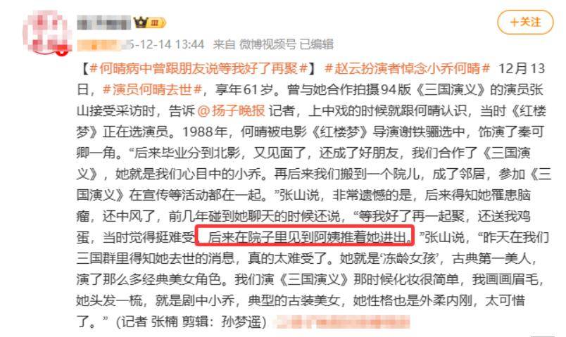 可想而知,何晴最后的日子身边恐怕并无至亲之人。