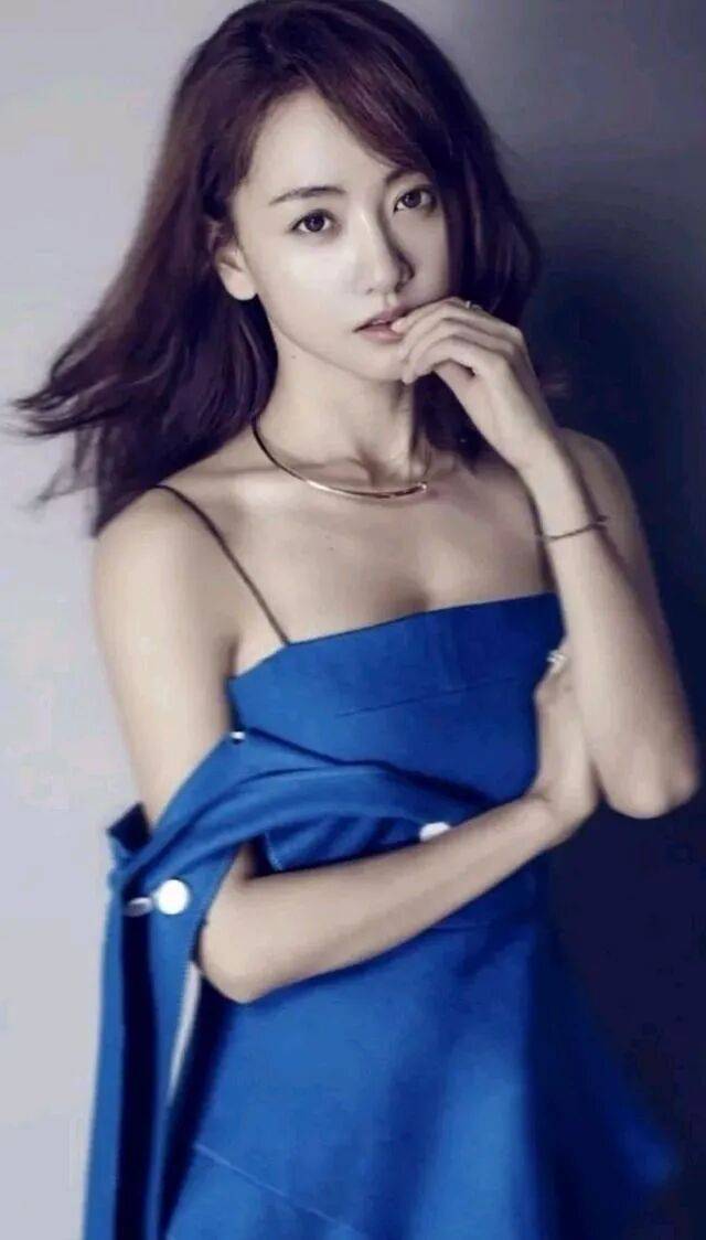 杨蓉穿着蓝色抹胸衣裙,单手撩在嘴边,俏脸又纯又欲,白皙的肌肤,绝对性感撩人!