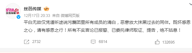 丝芭传媒全盘否认指控,斥责曾艳芬“污蔑全体成员清白”,声明已报警并委托律师提告。