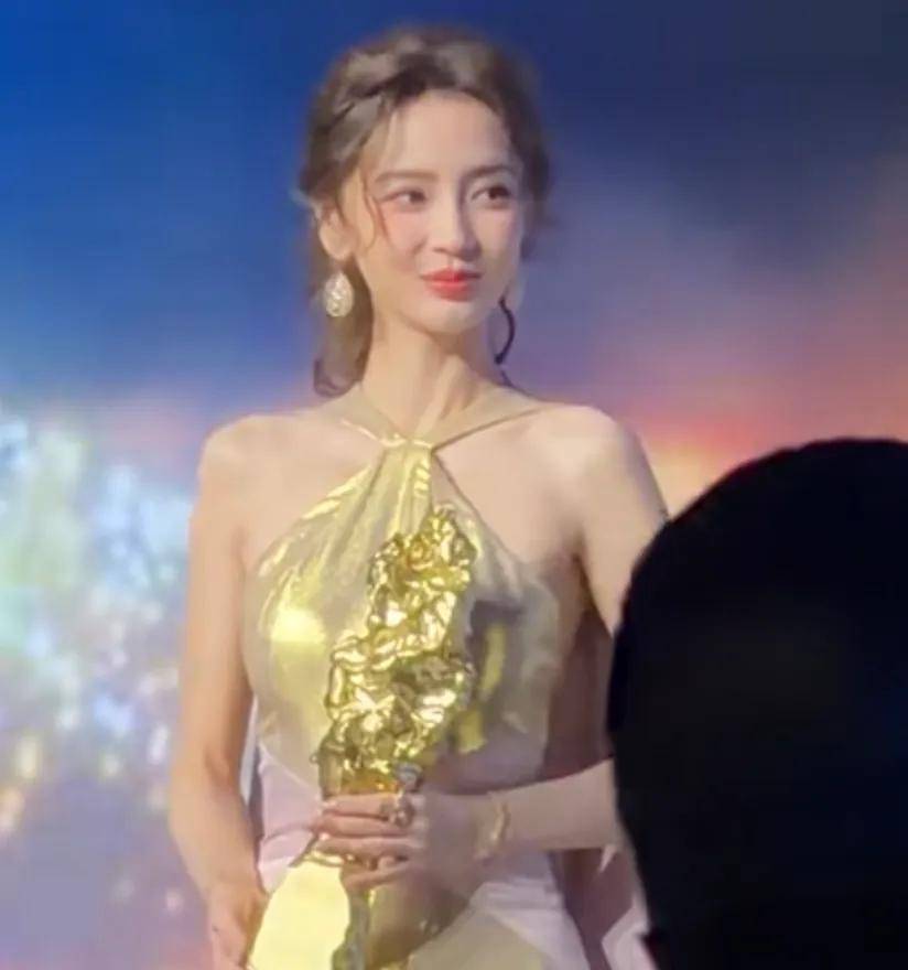艺术之夜红毯结束之后,baby还上台领了个奖,站在台上的她依旧拘谨,笑容都带着局促。