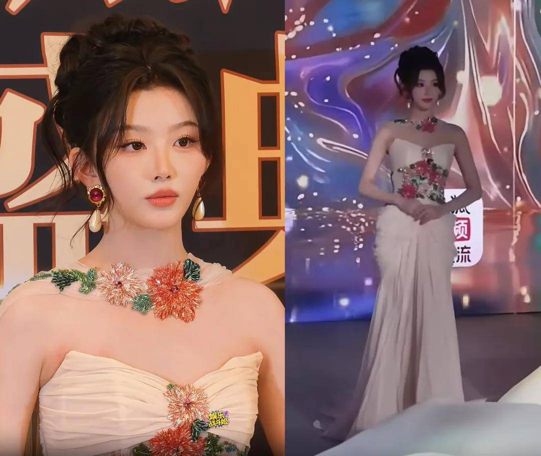 宣璐的花朵绿色蓬蓬纱裙造型就像在扮演花仙子,要是换个发型的话,其实有点像十几二十年前古装仙侠剧里的造型。