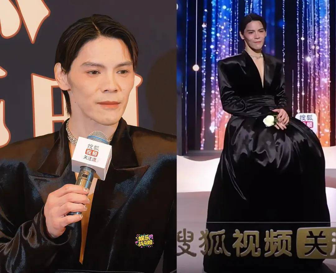向佐每次出席时尚盛典,都是男明星中最瞩目的存在。这次他梳了一个四六分的油头,秀出了崎岖的脸型;搭配半是裙子半是裤子的缎面西装套装,全身上下写满了想要争头条的野心。