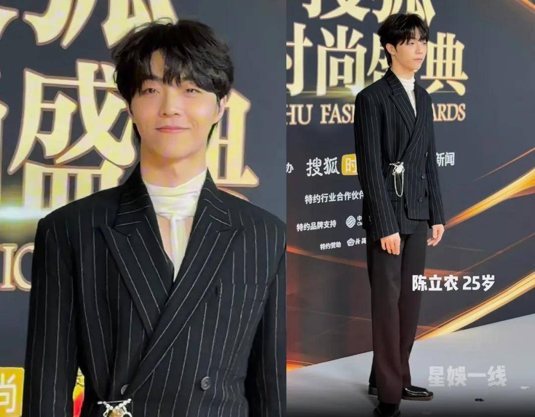 跟范丞丞一样在同一档选秀节目中出道的爱豆陈立农,似乎已经很久没有在内地的时尚活动中露脸了,可见如果经纪公司不够强,选秀出道后能持续红的爱豆很少。他穿了条纹外套配西装裤,看起来还是跟以前一样瘦,变化不大。