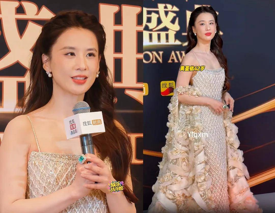 黄圣依穿了一条香槟金色吊带长裙,比起裙子,更耀眼的还是她的脸,不仅颜值高,而且状态自然显年轻,跟年轻时一样美,但如今的美多了几分岁月沉淀带来的柔和。