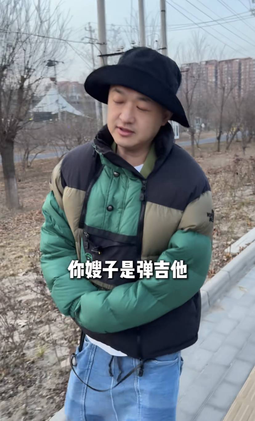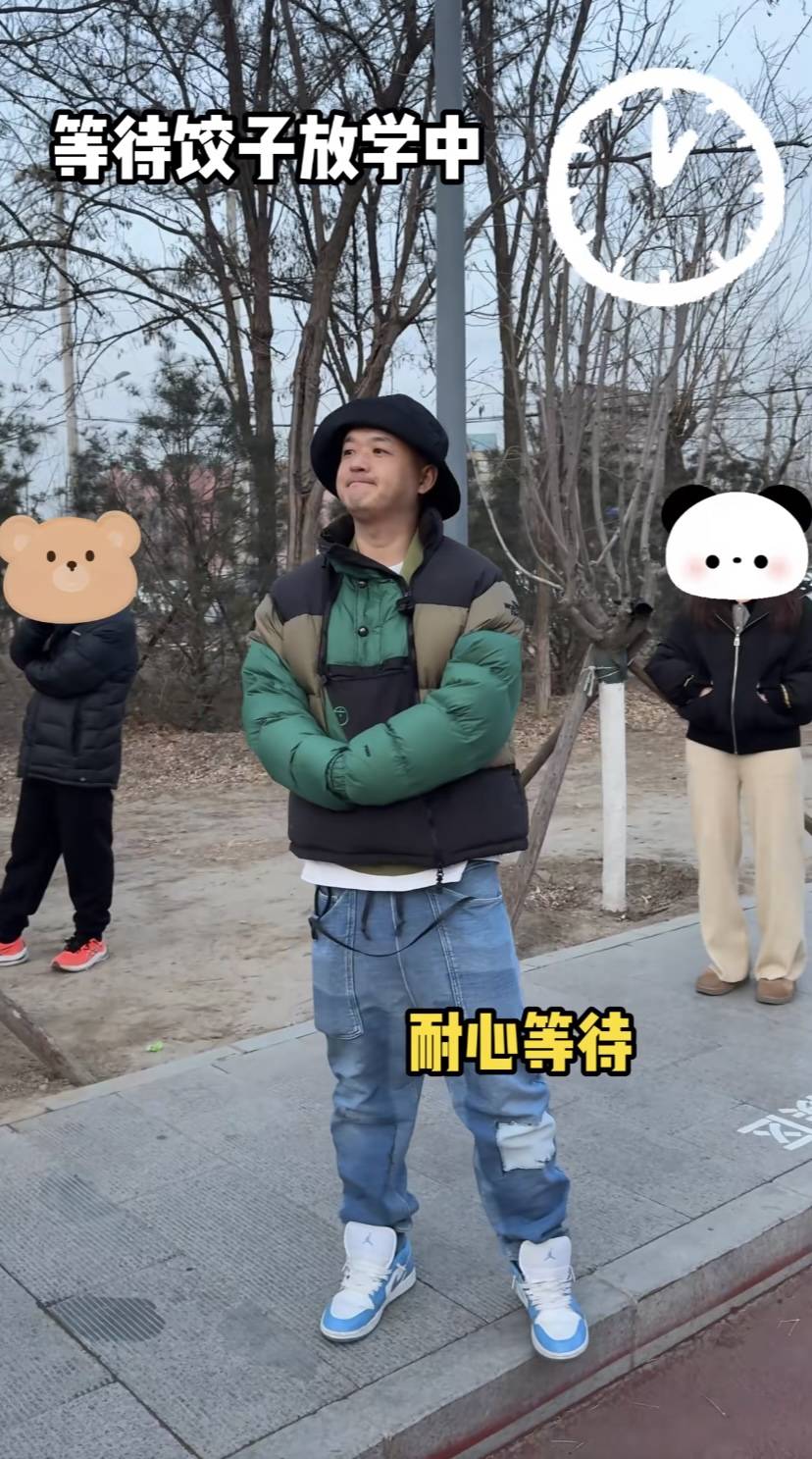 终于来到女儿学校门口,包贝尔安静的等待。他穿了一件撞色的羽绒服,下身是浅蓝色高腰牛仔裤,很有艺术感的帽子、一看就挺生动的。