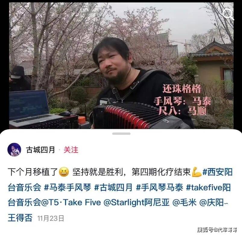 令人唏嘘的是,这位始终积极对抗病魔的艺术家,在治疗期间仍未放下对音乐的热爱。完成一期治疗后,他便重返舞台演出,甚至有好友回忆,经常能看到他在上台演出前吃药的身影。他的最后一条视频更新于11月23日,视频中他向大家报喜,称第四期化疗已结束,下个月就能进行移植手术,预计元旦便可出院。而就在半个月前的12月5日,马泰还在社交平台评论区与网友暖心互动,感谢大家的祝福,彼时他并未透露病情恶化的消息,如今再看令人泪目。